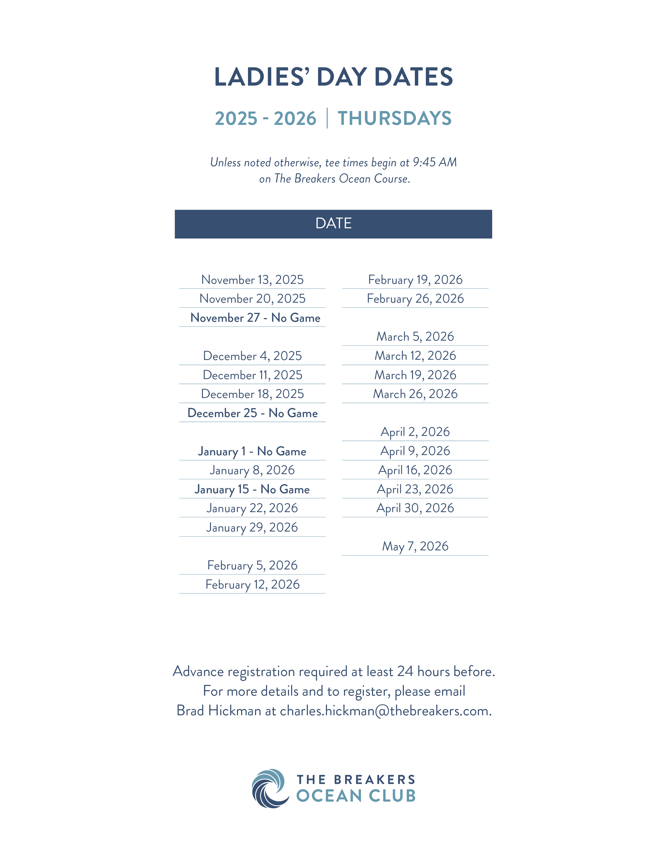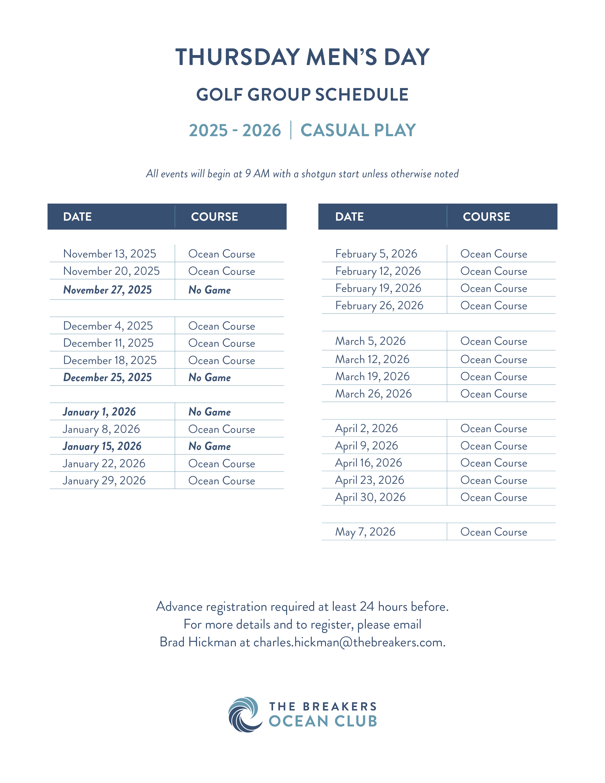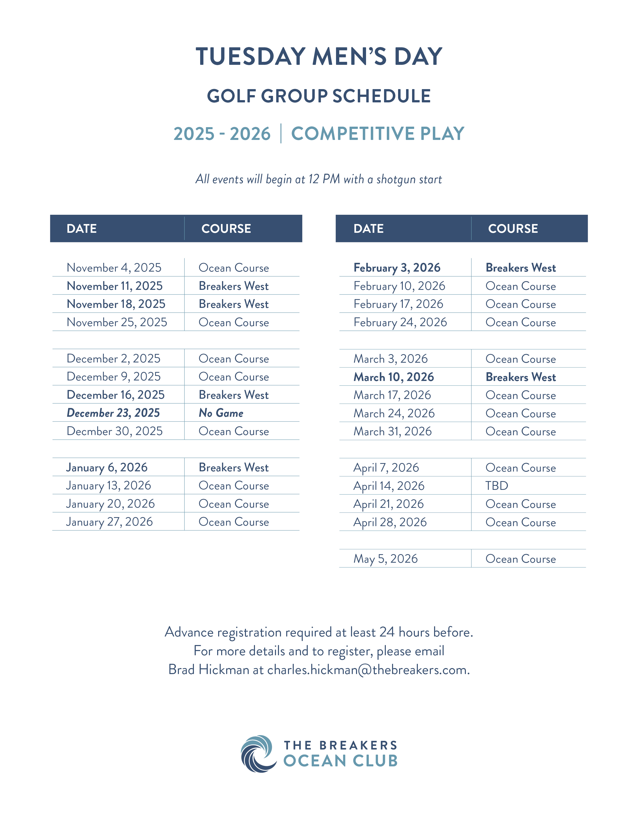- Men's Member-Guest Golf Tournament at Breakers West: February 5 - 7